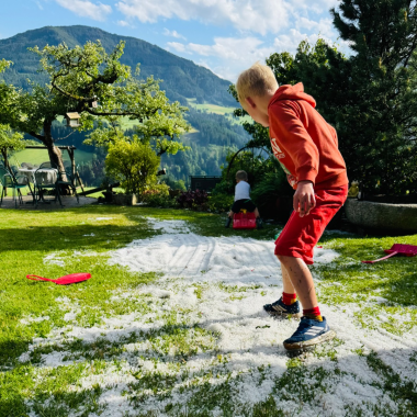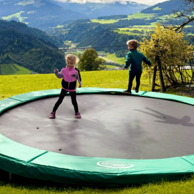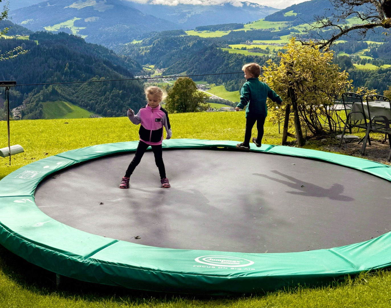 Spielen, rumtollen und aufregende Stunden erleben am geräumigen, tollen Abendeuterspielplatz, mit einem Trampolin, Kletter-Strohstadl, Ritterburg, Seilbahn, Rutschen, Schaukeln und einer großen Sandlandschaft.
