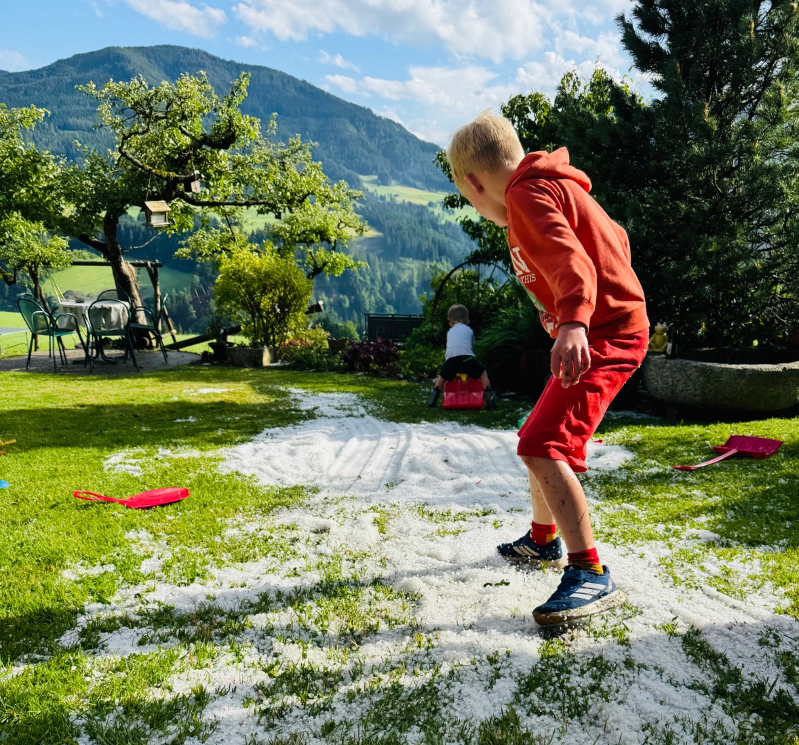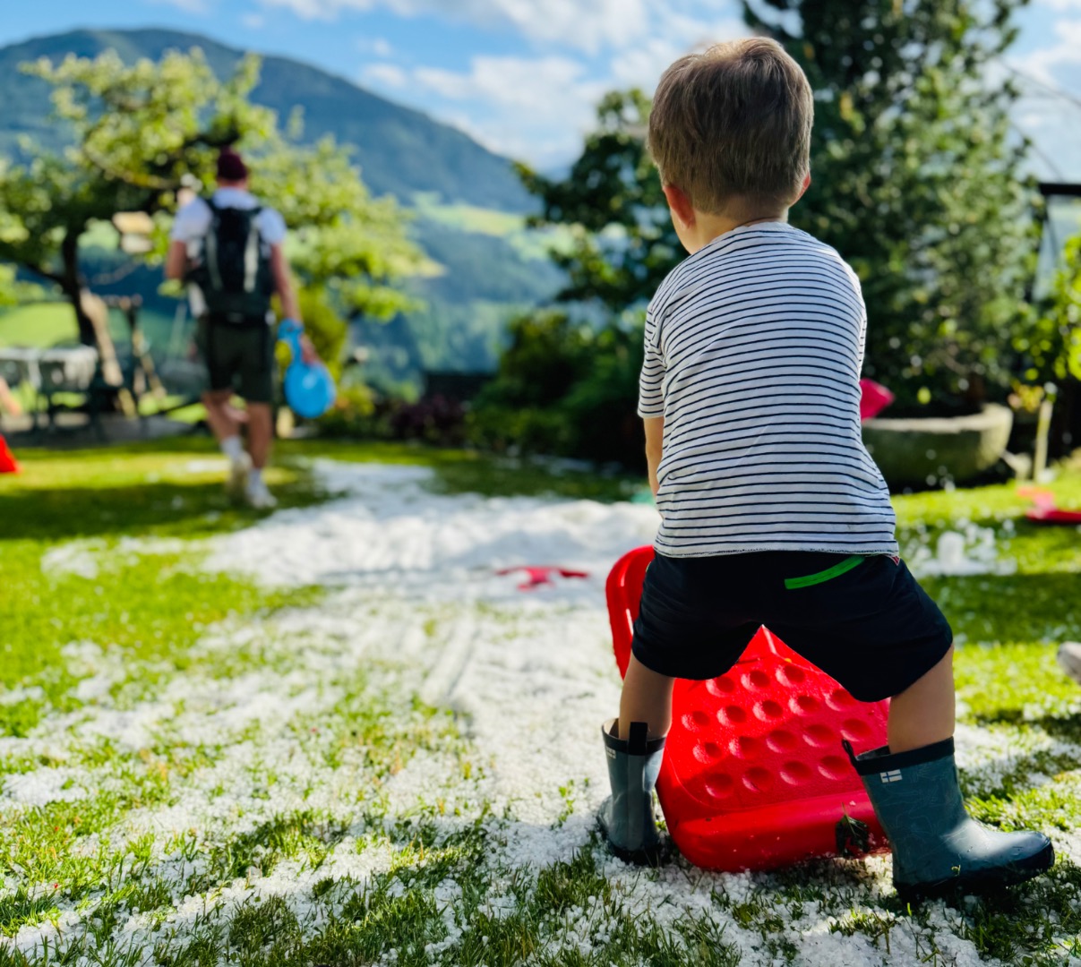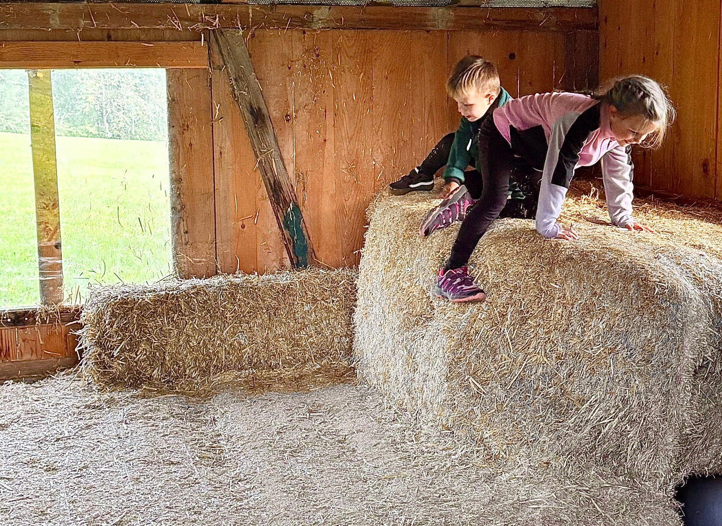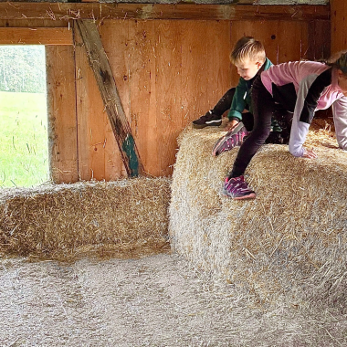 Wer dem Landleben etwas näher kommen möchte, darf jederzeit im Stall bei den Kühen die bis Ende Mai und dann wieder Anfang Oktober zuhause sind, bei den Kleintieren, Ponys oder bei der Heuarbeit mithelfen und mit dem Traktor, Heulader mitfahren.