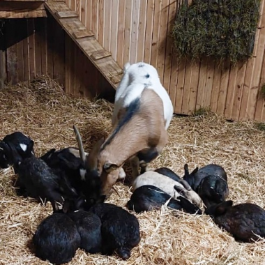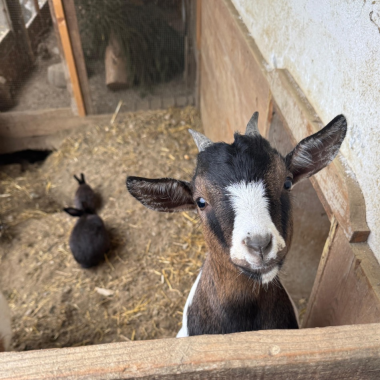 Besonders beliebt sind unsere vielen Knuddeltiere: Katzen, Hasen, Zwergziegen und Zergschweinchen, die gerne besucht und gefüttert werden dürfen. Unsere süßen Kälbchen und natürlich auch unsere ca. 40 Kühe die sich von Juni bis ende September auf der Alm befinden, freuen sich ebenso auf eine schmusige Kuscheleinlage.